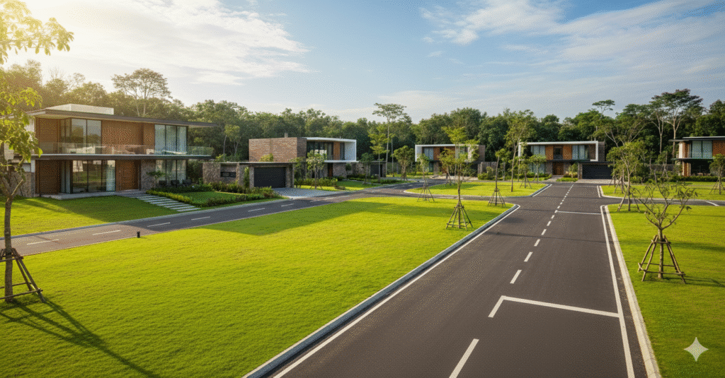 Some homes are built. Others are crafted with intention. Green Square Plots by SLV Group  isn’t just another luxury address—it’s an exclusive sanctuary designed for those who appreciate the finer things in life. With exclusive 250 bespoke villaments, this boutique development blends architectural elegance, thoughtful design, and unmatched privacy. Every square foot tells a story, whether it’s the private courtyards that breathe life into your home, the lush tropical landscapes, or the seamless fusion of earthy aesthetics with Indo-European sophistication. And like a fine wine, this home will only grow richer with time, becoming a treasured legacy for generations.